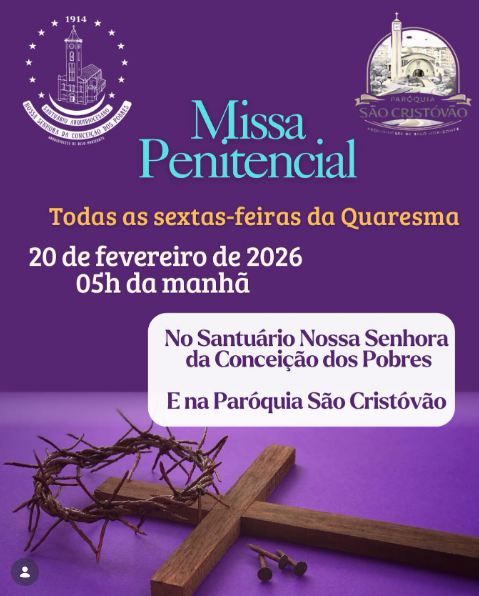 Dia 02/03 às 19h no Santuário Senhor do Bonfim |