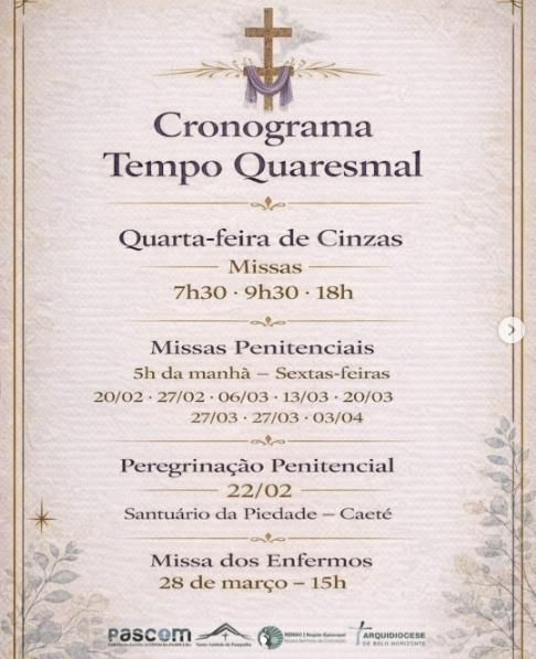 Queremos convidar você a vivenciar essa caminhada de 40 dias com a Mãe Piedade. Um caminho em que a Igreja nos conduz ao essencial: conversão, silêncio e reencontro com Cristo.
